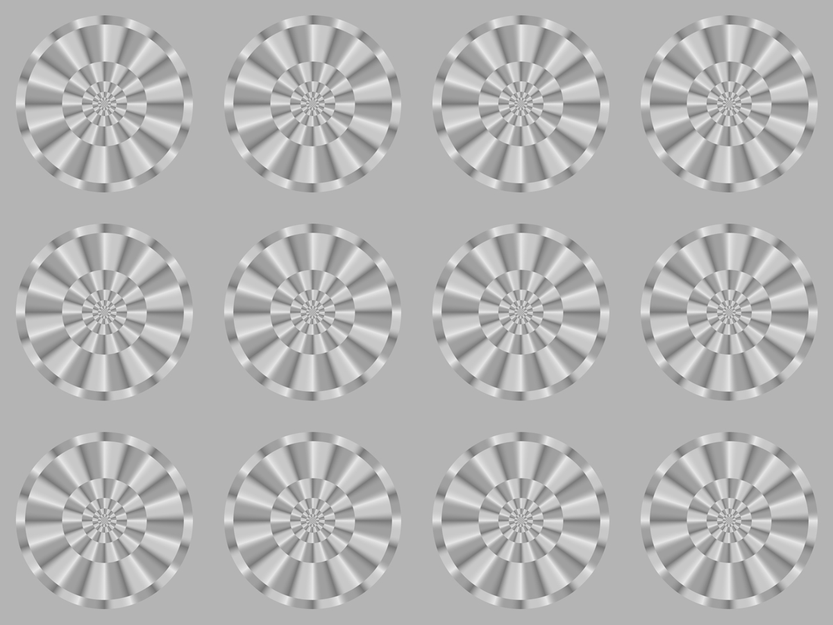 明るいディスプレーでは円盤は時計回りに回転して見える。印刷物を暗いところで見るとわずかに反時計回りに回転して見える。