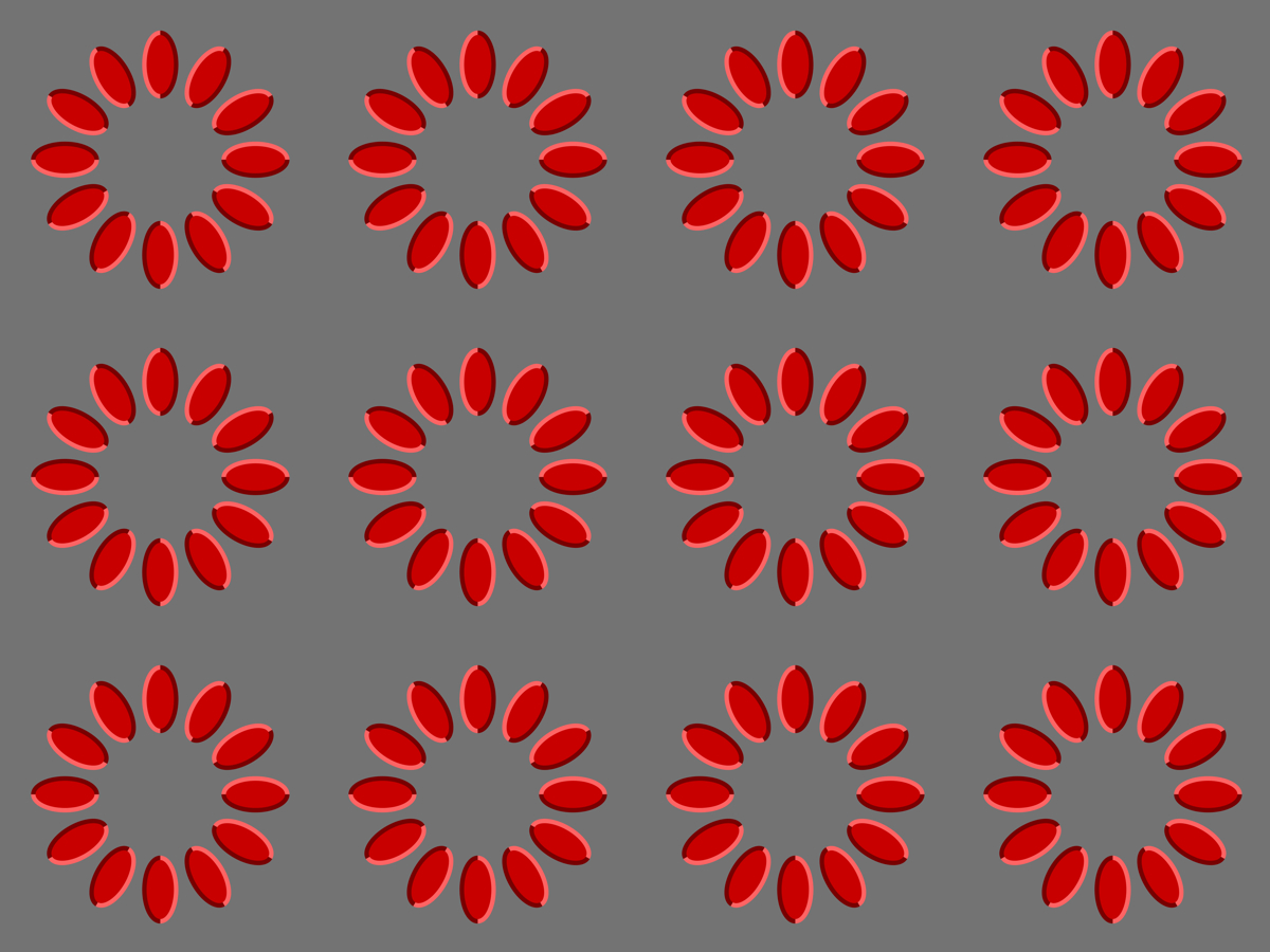 明るいディスプレーでは各リングは時計回りに、印刷物を暗いところで見ると反時計回りに回転して見える。