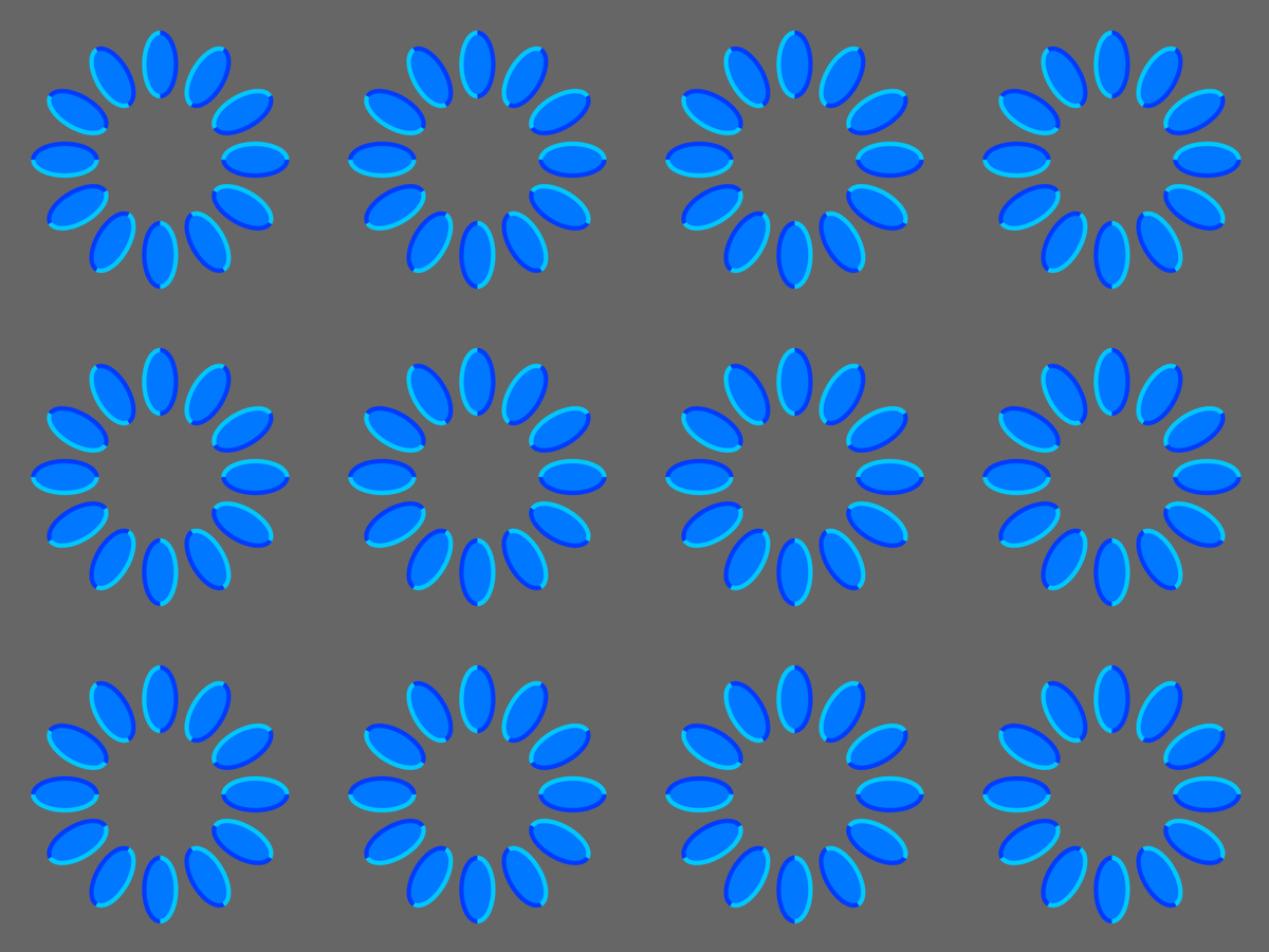 明るいディスプレーでは各円盤は時計回りに、印刷物を暗いところで見ると反時計回りに回転して見える。