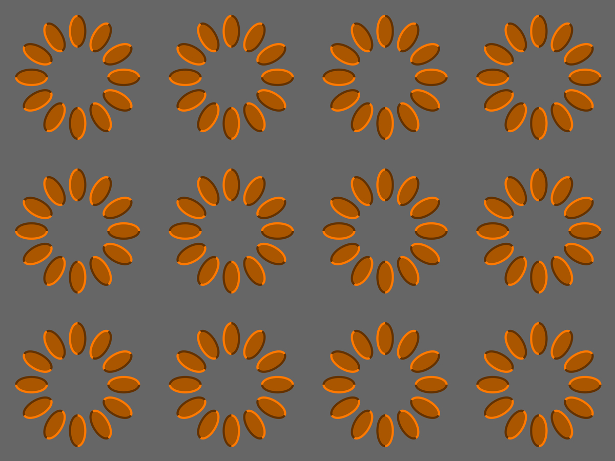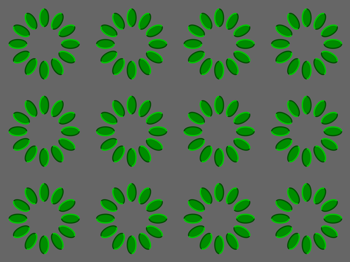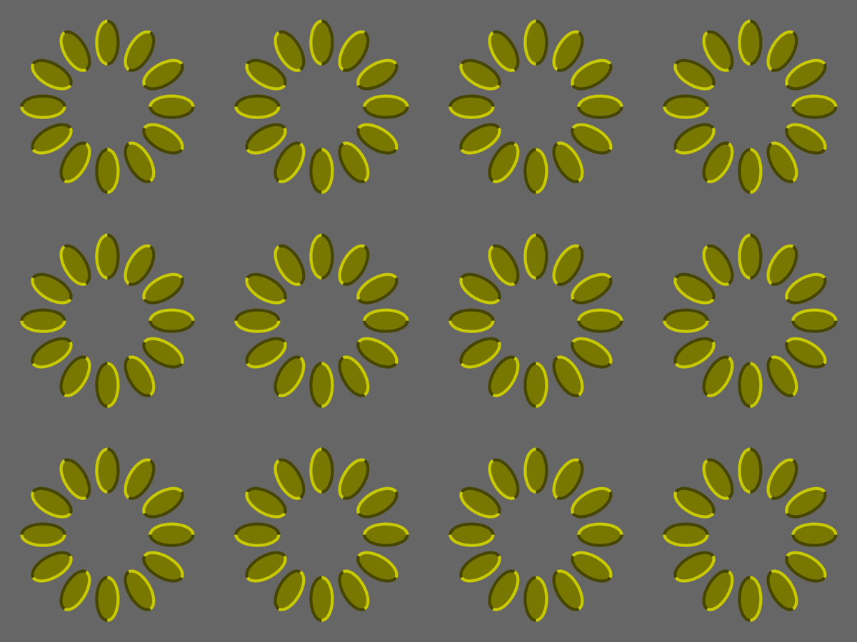 明るいディスプレーでは、それぞれ反時計回りに回転して見え、暗いところで印刷物を見ると、時計回りに回転して見える。
