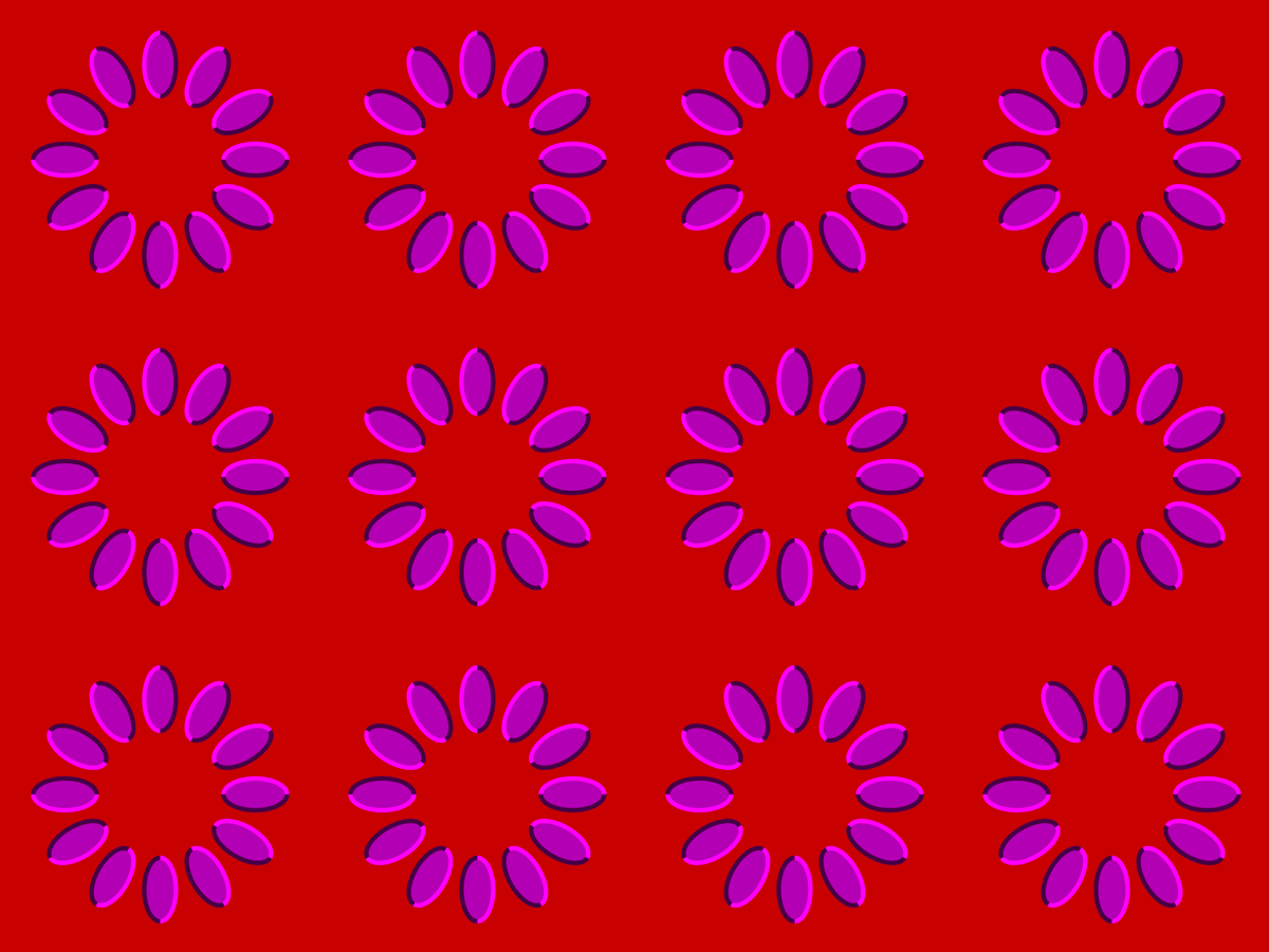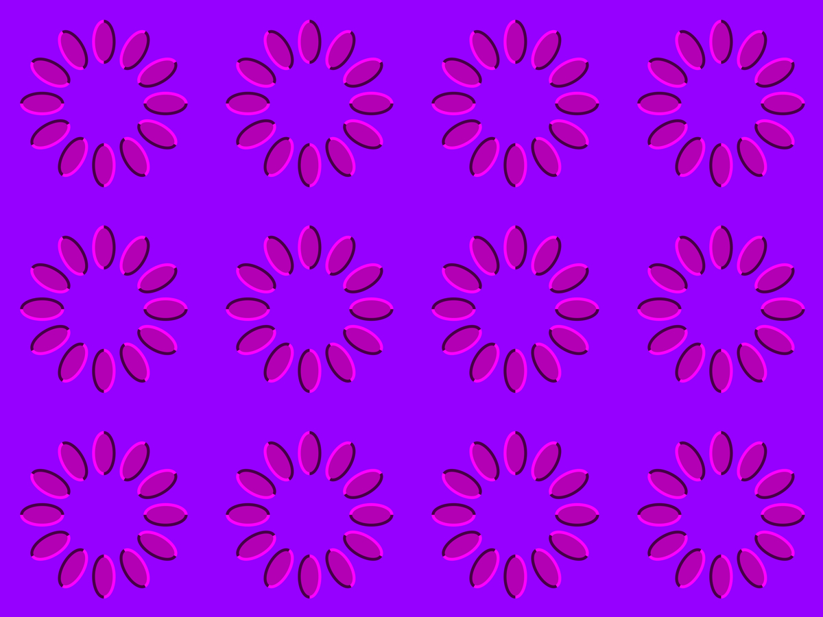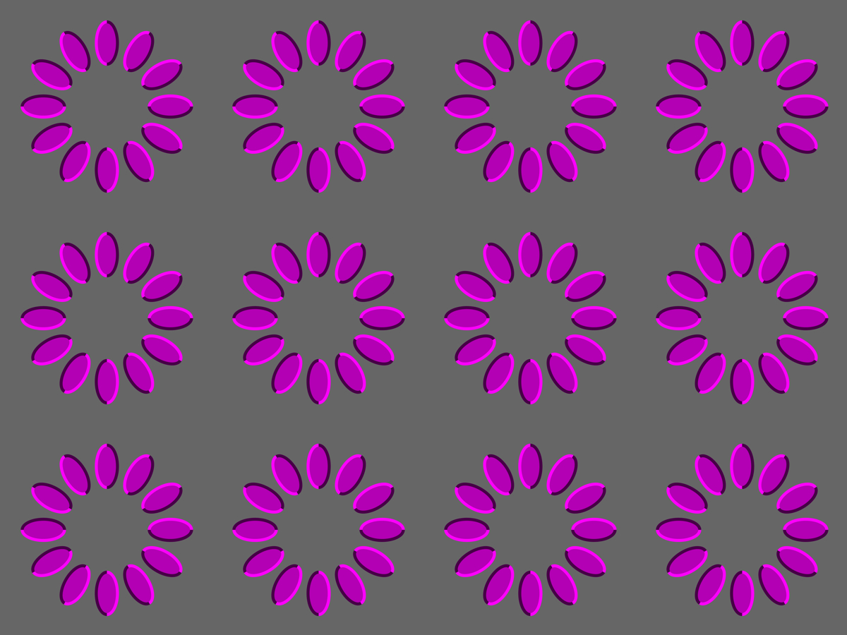 明るいディスプレーでは、それぞれ反時計回りに回転して見え、暗いところで印刷物を見ると、時計回りに回転して見える。