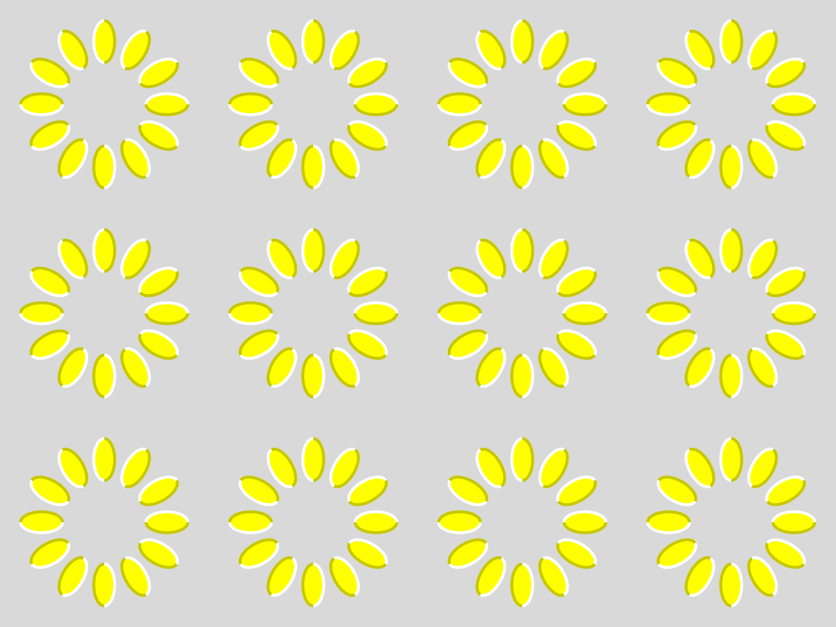 それぞれの円盤が時計回りに回転して見える。暗いところでは反時計回り。