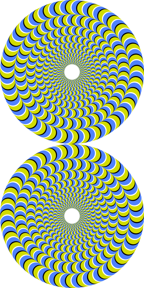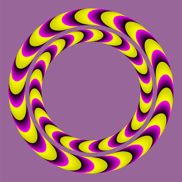 外側のリングは反時計回りに、内側のリングは時計回りに回転して見える。