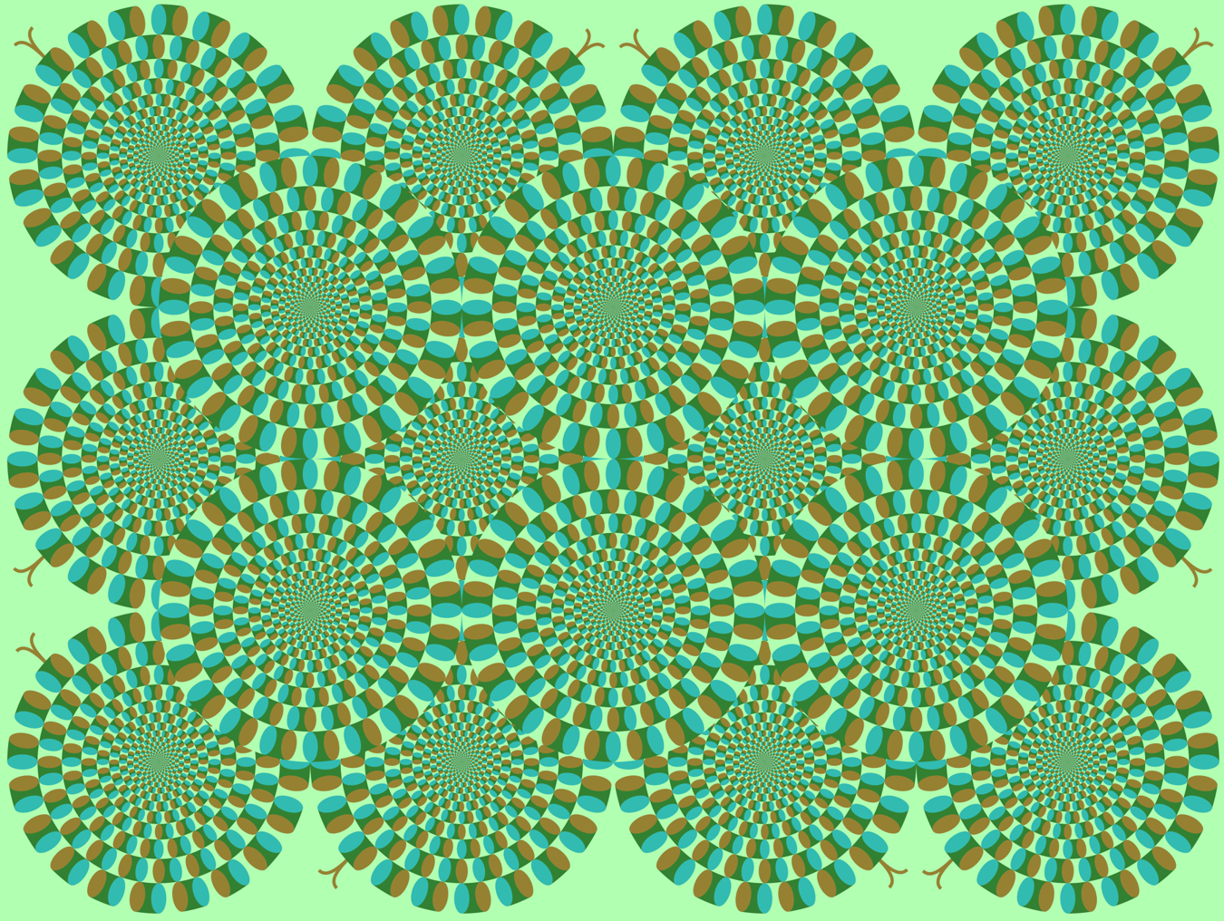 「蛇の回転・赤と緑 ― 緑色被りによる茶色が赤色に見える錯視付き」