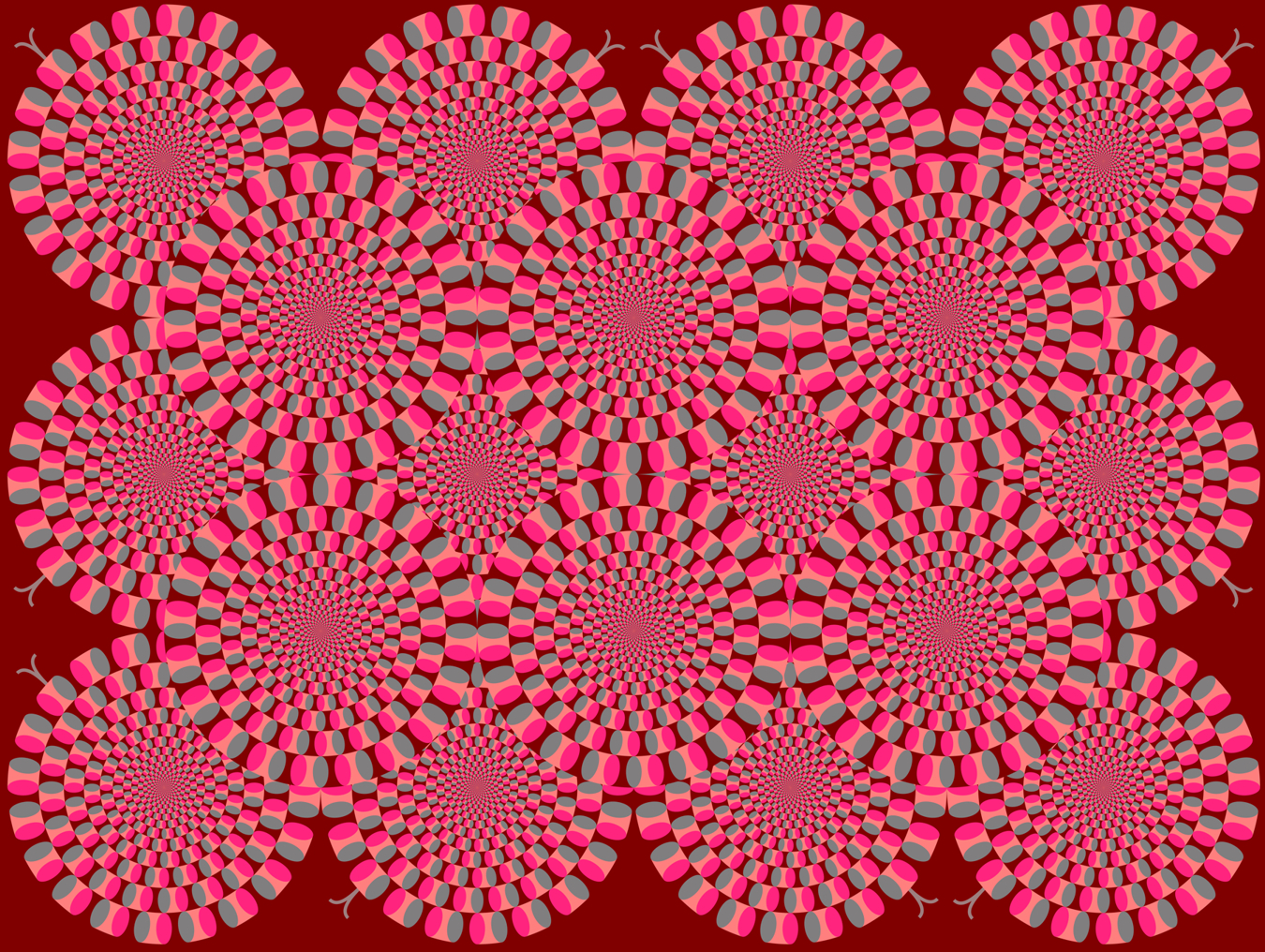 「蛇の回転・赤と緑 ― 明るい赤紫色被りによる灰色が緑色に見える錯視付き」