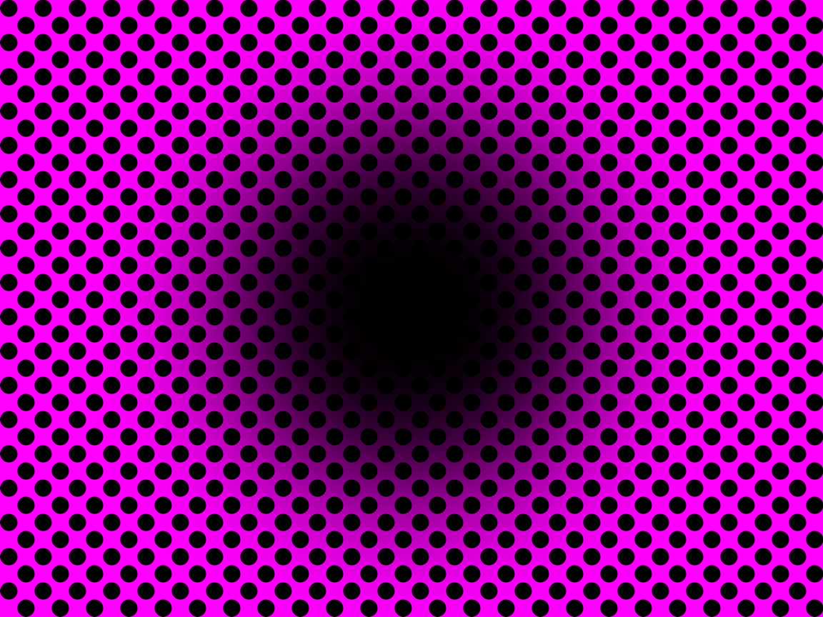 右のリングは時計回りに回転して見えるが、反時計回りに回転している。左のリングは、実は反時計回りに回転していることを中心視で確認できるが、周辺視では右に回転して見える。左のリングの中心を見て観察すると、リングは時計回りに回転したり、反時計回り回転したりと、行ったり来たりするように見える。