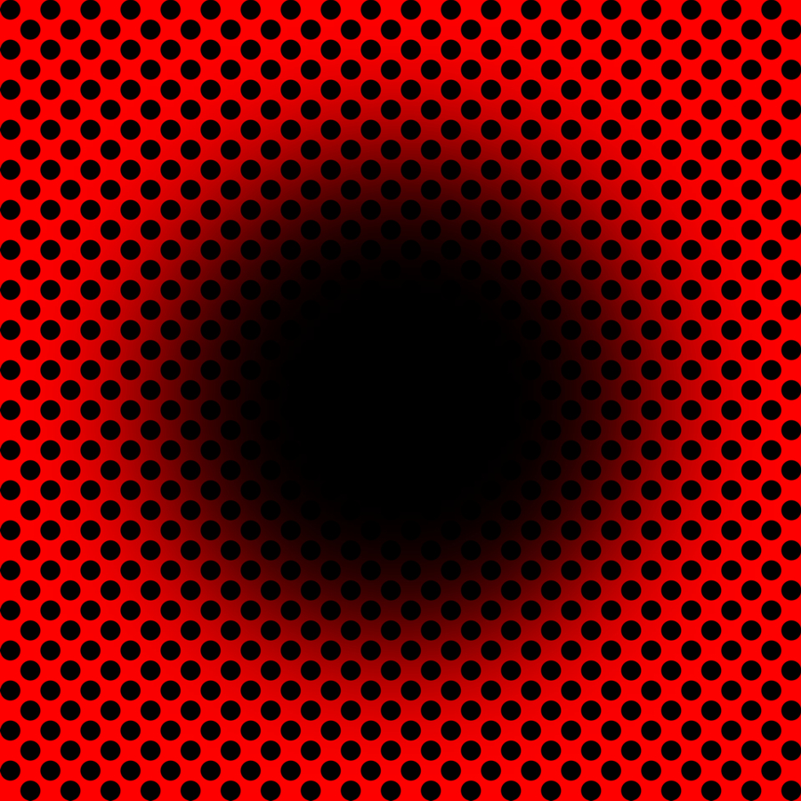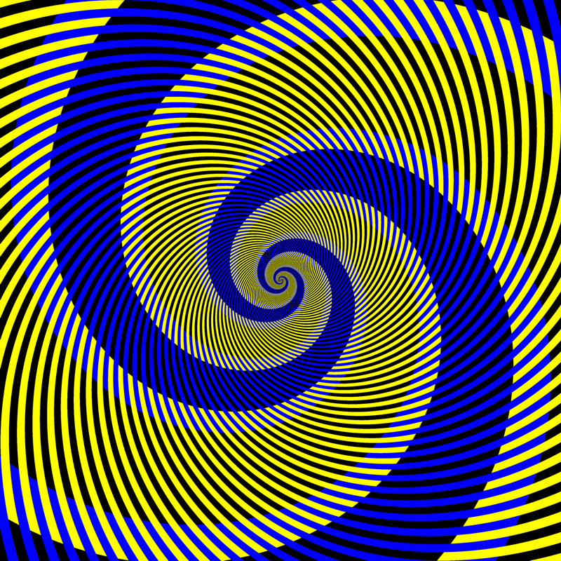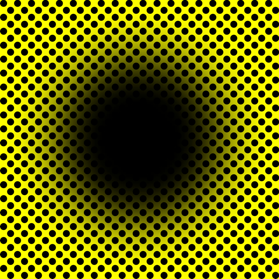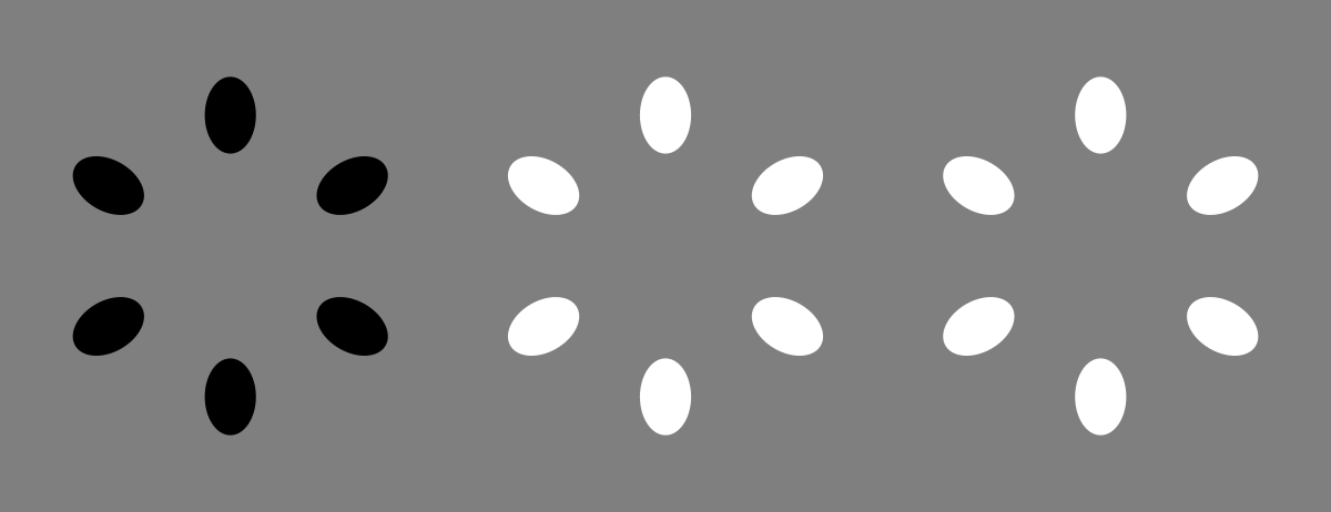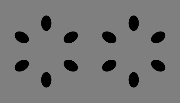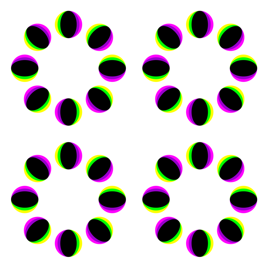 左右のリングは反時計回りに同じ速度で回転しているが、右のリングは反時計回りに回転して見えるが、左のリングは(特に中心視では)ゆっくり反時計回りに見えたり、(周辺視では)時計回りに回転して見える。
