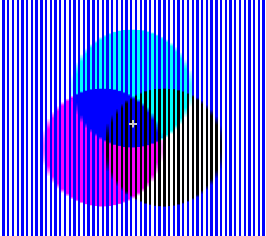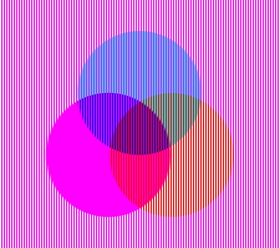 マゼンタに見えるところは赤である。シアンに見えるところは緑である。