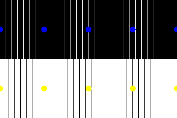 右下の円の一部は黄色に見えるが、黒と白の縞模様である。