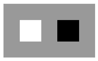白の正方形が黒の正方形よりも大きく見える。明るい領域が暗い領域に進出するように知覚される現象として昔から知られている。