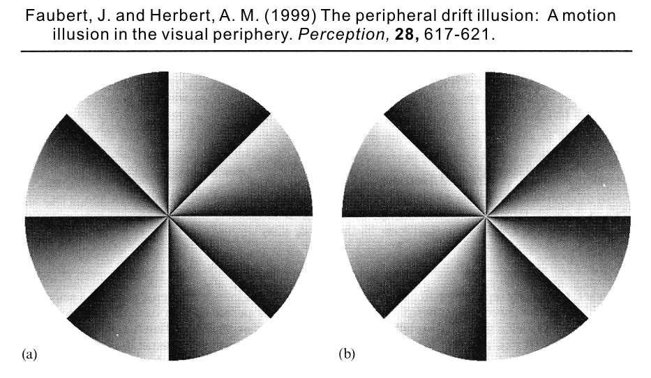 Faubert, J. and Herbert, A. M. (1999) The peripheral drift illusion: A motion illusion in the visual periphery. Perception, 28, 617-621.