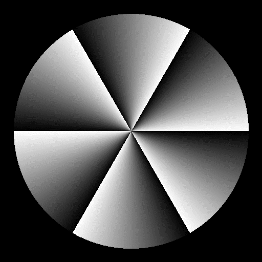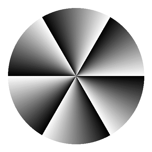 中央を見ながら目を図に近づけると右4分の1と左4分の1の扇領域は残りの上下の扇領域よりも暗く見え、遠ざかる時は後者が前者よりも暗く見える。