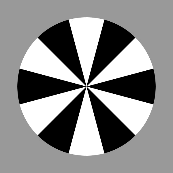 黒→ターゲット→黒 ・・・ 白黒エッジは黒側から白側の方向に動いて見える。「雲」のようなものはその逆方向に回転して見える。