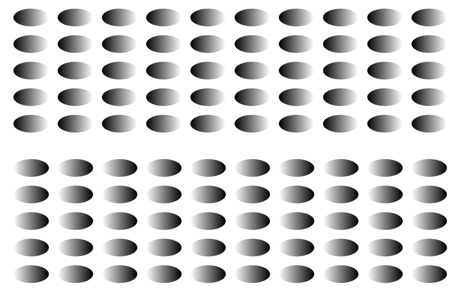 中央を見ながら目を図に近づけると下半分が上半分よりも暗く見え、遠ざかる時は上半分が下半分よりも暗く見える。