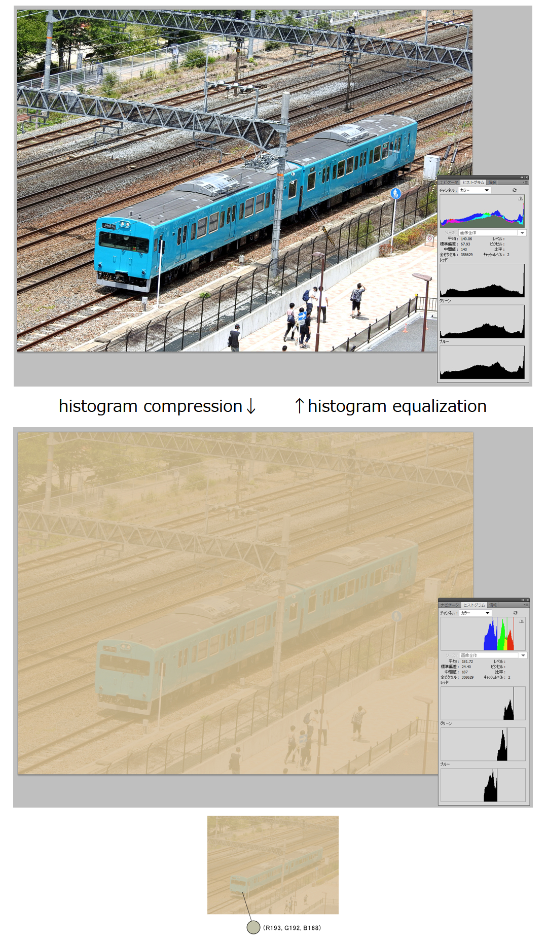 histogram equalization↓ ↑additive color change