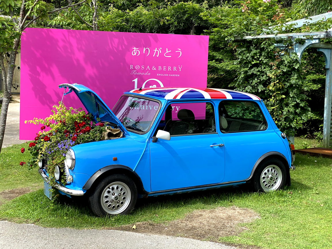 左の画像では、青く見えるボディの画素は青くなく、オレンジ色の色相である。右の画像がオリジナルの写真。2021年6月20日(日)に、ローザンベリー多和田(滋賀県米原市)で撮影。