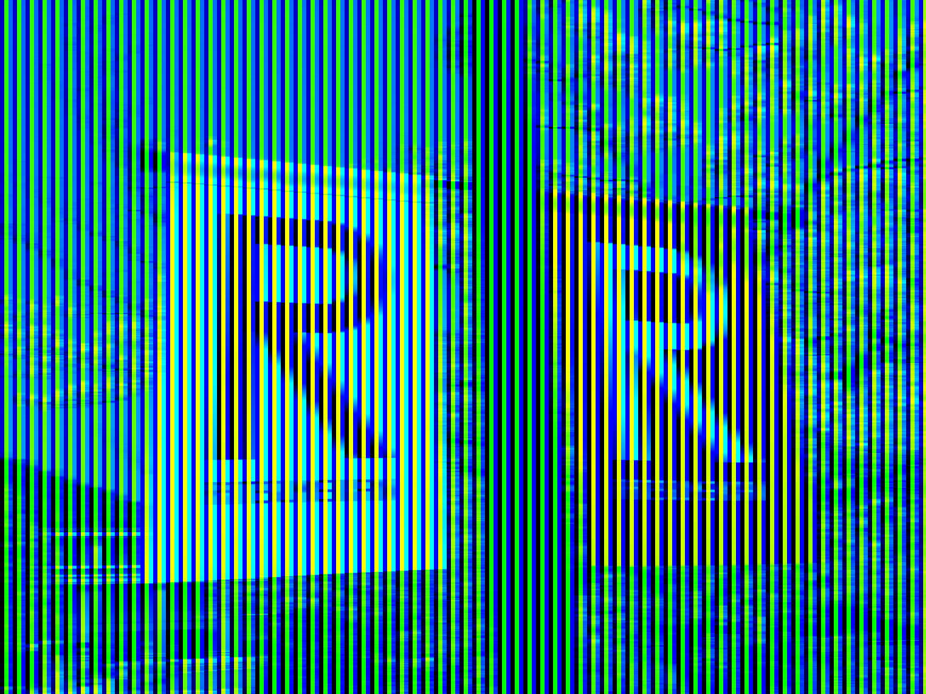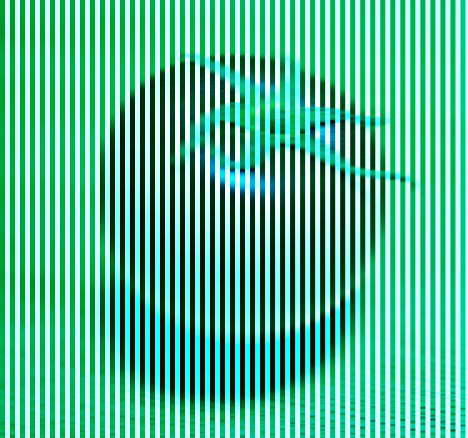 水色の螺旋と黄緑の螺旋があるように見えるが、どちらも同じ色(r = 0, g = 255, b = 150)である。この色の錯視はモニエ・シェベル錯視に近いと思うが、彼らの理論には合わないのかもしれない。