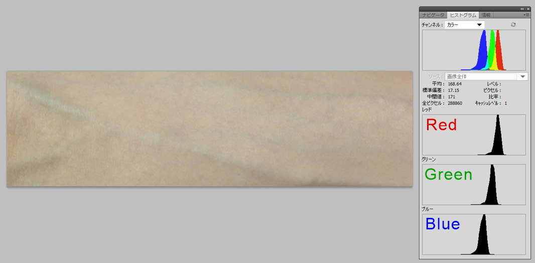 この手の青く浮き出て見える静脈は物理的には青くなく、ほぼ灰色あるいは彩度の低い黄色であった。