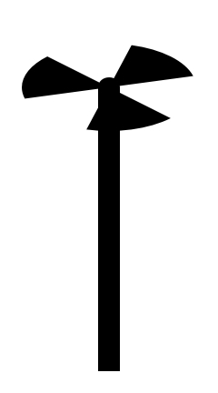 シルエット錯視のファンのために作成した奥行き反転図形。こちら向きのファンが反時計回りに回転して見える見え方と、向こう向きのファンが正面から見たら時計回りに回転しているように見える見え方が反転する。ジンステーデンの風車小屋のパクリであるが、わずかに方向違いである。