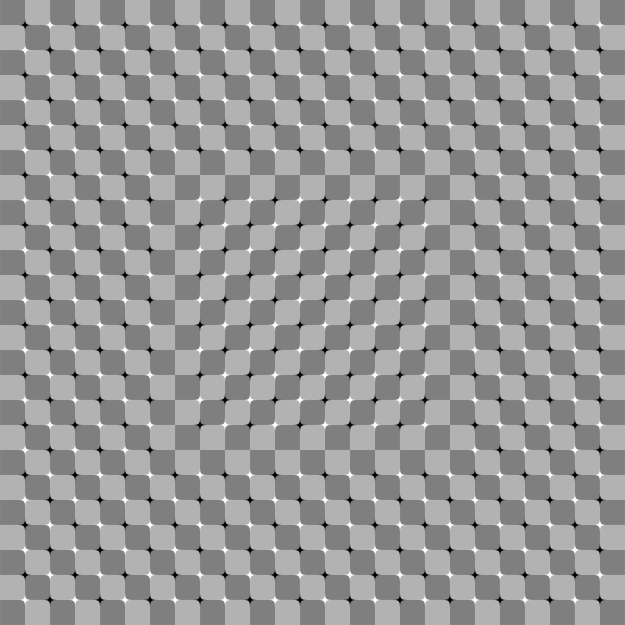 ある繰り返しパターンが、何もしなくても一定の方向に動いて見える錯視