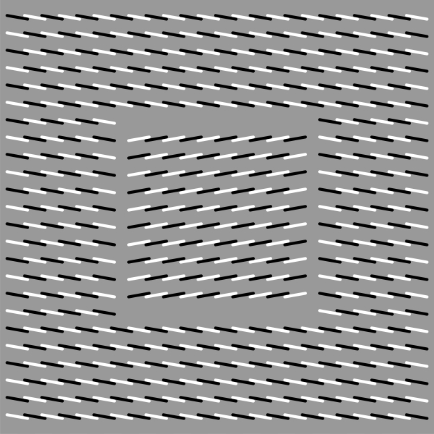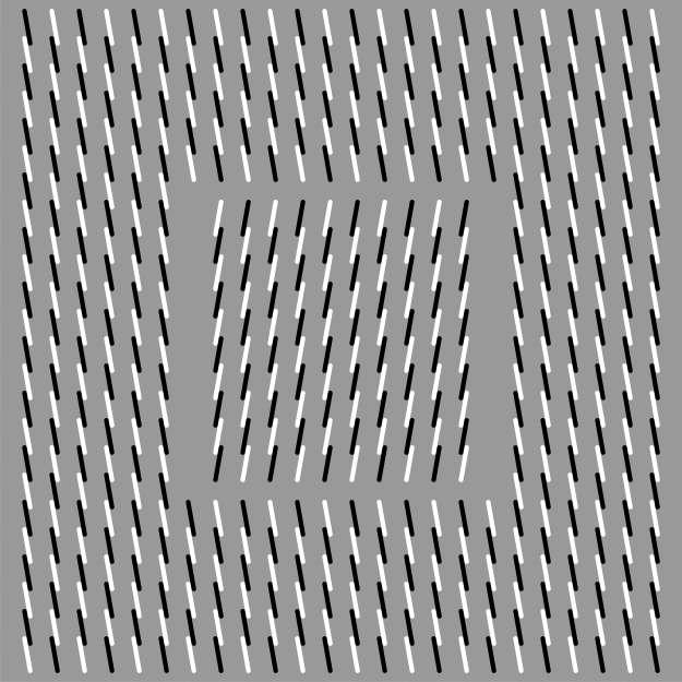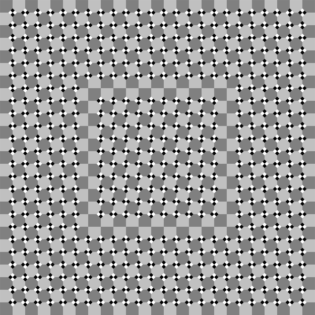 北岡明佳のコメント: 原理としてはフレーザー錯視のようですが、それよりもなによりも、世界初のフラクタル錯視図形 なのではないでしょうか!? 新井先生の視覚数学e研究室報告に、この錯視の論文が出ました。 <2007年10月4日>