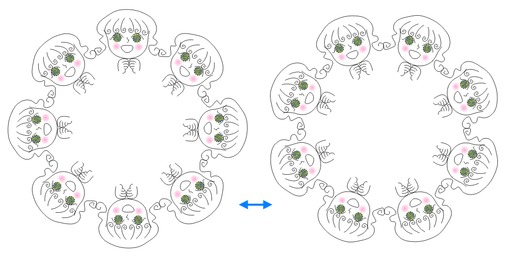 2枚の画像が切り替わるたびに、1箇所だけ変化する。