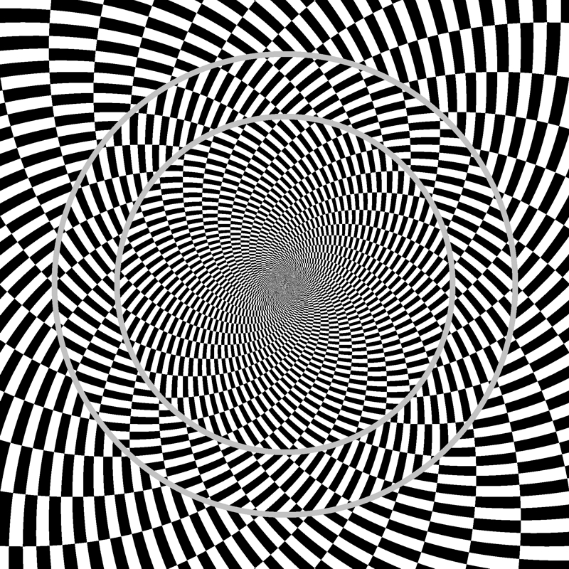中心を見ながら目を近づけたり遠ざけたりするとリングが回転して見える。