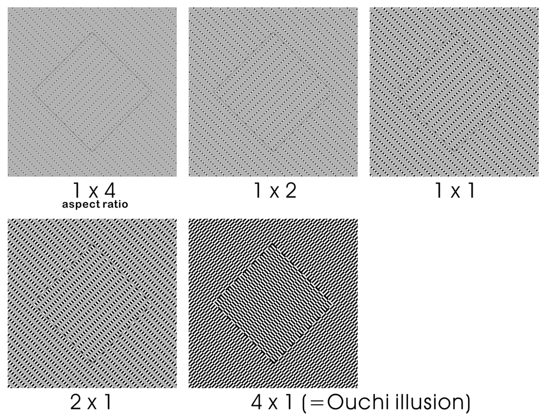 Ashida, H., Sakurai, K. & Kitaoka, A. (2005). A new variant of the Ouchi illusion reveals Fourier-component-based processing. Perception, 34, 381-390. https://doi.org/10.1068/p5060