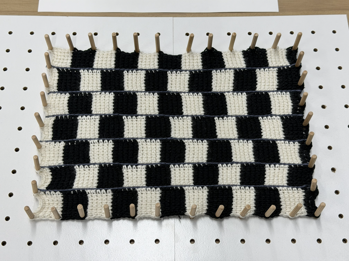 北岡評 編み物で錯視を表現することは、世界初の試みかもしれない。