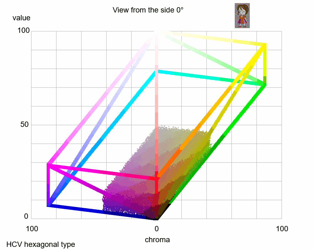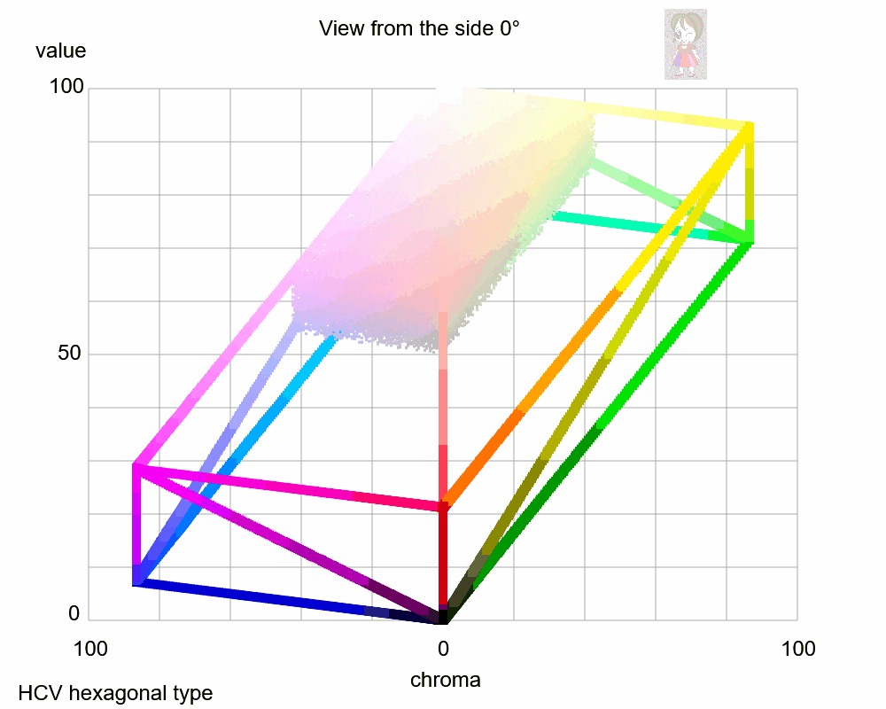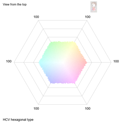 である画像。右は、目は赤く見えるが、画素は黄色(R188, G188, B0)