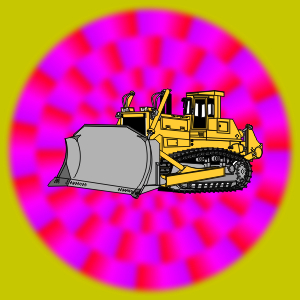内側のリングは縮小して見え、外側のリングは拡大して見える(最適型フレーザー・ウィルコックス錯視)。中心を見ながら図に目を近づけたり遠ざけたりすると、リングがお互いに反対方向に回転して見える(回転オオウチ錯視)。また、中心を見ながら図に目を近づけると内側のリングが赤味を増し、目を遠ざけると外側のリングが赤味を増す。1つの図で3つも錯視が楽しめるおトクな錯視デザイン。
