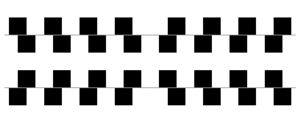 ずれた線の錯視、線とエッジの交替の錯視、ずれたエッジの錯視、ミュンスターベルク錯視(カフェウォール錯視)の関係