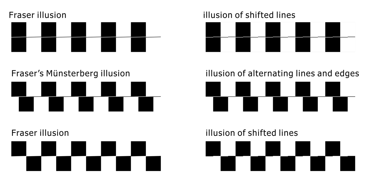線のフレーザー錯視、線とエッジのフレーザー錯視(フレーザーのミュンスターベルク錯視)、エッジのフレーザー錯視