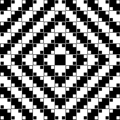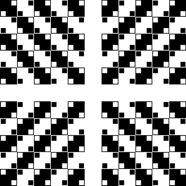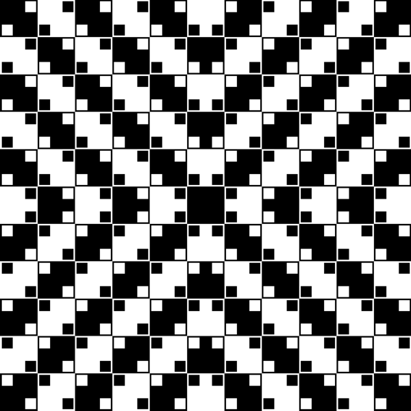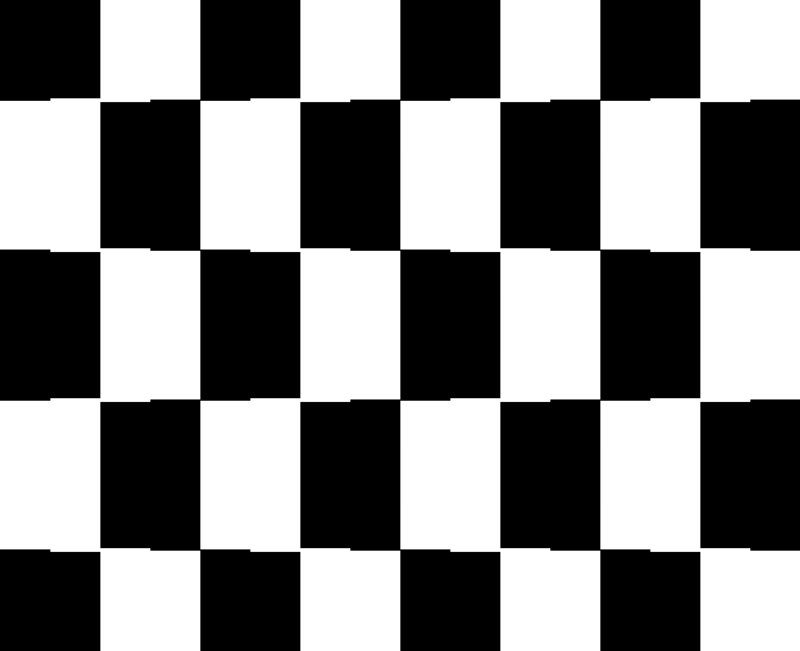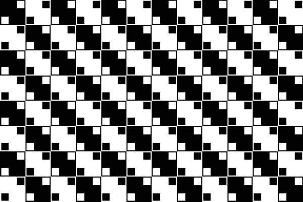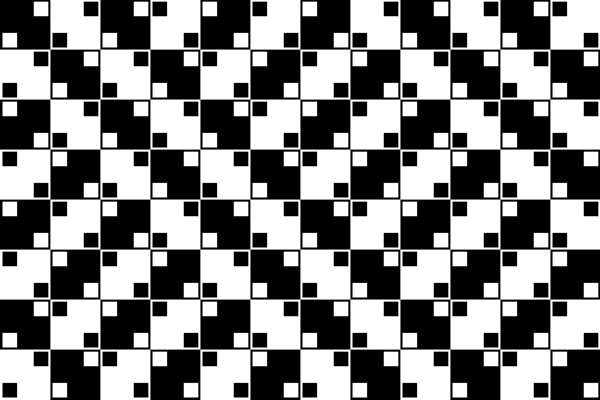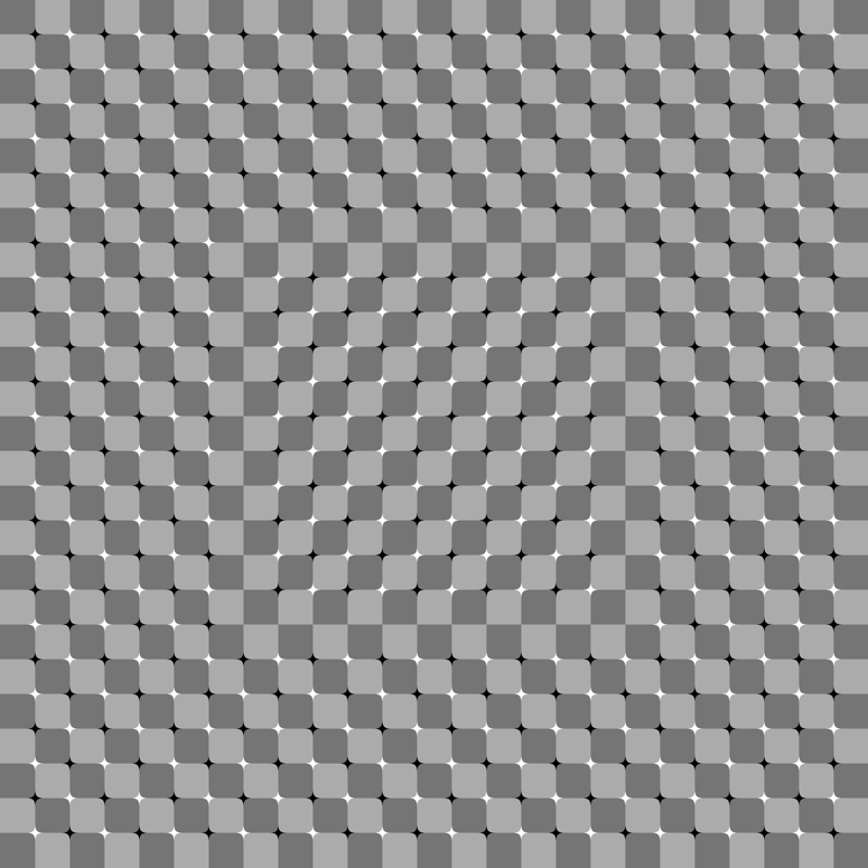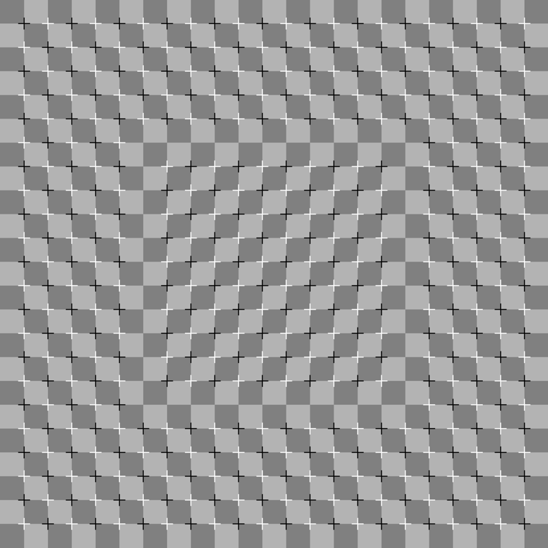 すべて正方形でできているが、膨らんで見える。動きの錯視もある。