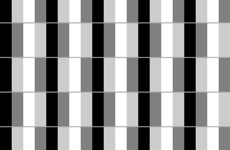 灰色の縦横の線は垂直・水平だが外向きに曲がって見える。(カフェウォール錯視による湾曲錯視図)
