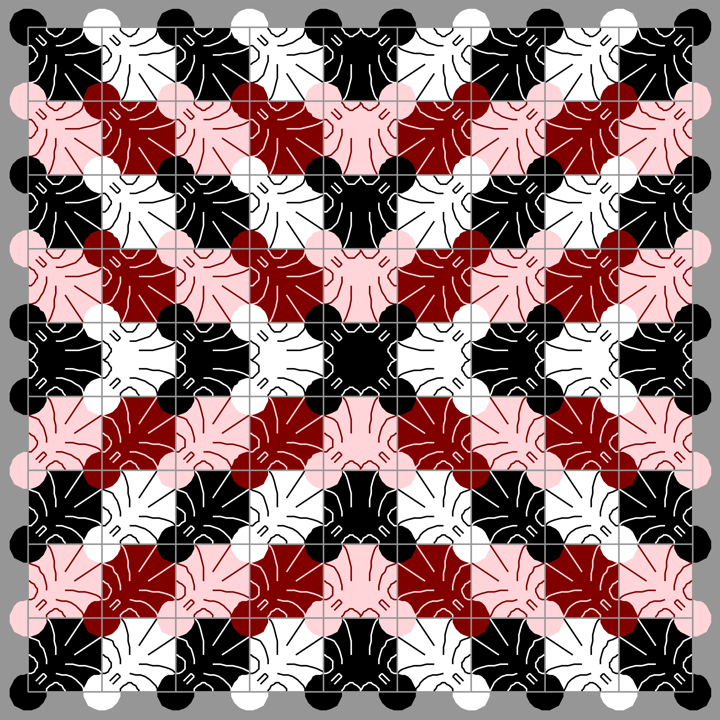 波の錯視においては、傾き錯視を組み合わせて下図のようなパターンになるよう制作する。