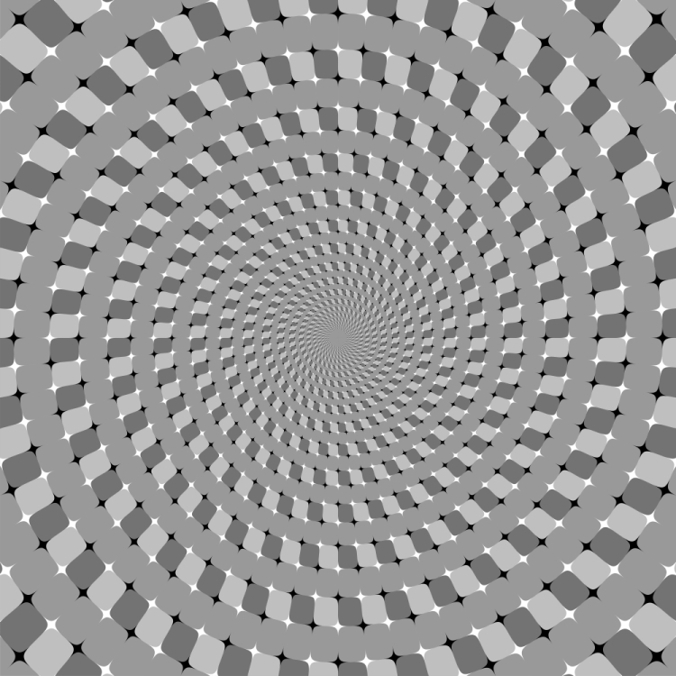 同心円が螺旋のように見えることがある。リングが反時計回りに回転して見える。