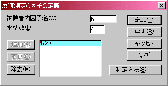 - 分析から一般線形モデルの反復測定を選択し,b の水準数を入力します。
