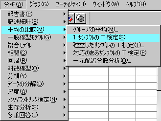 - 分析から,1 サンプルの t 検定を選択します。