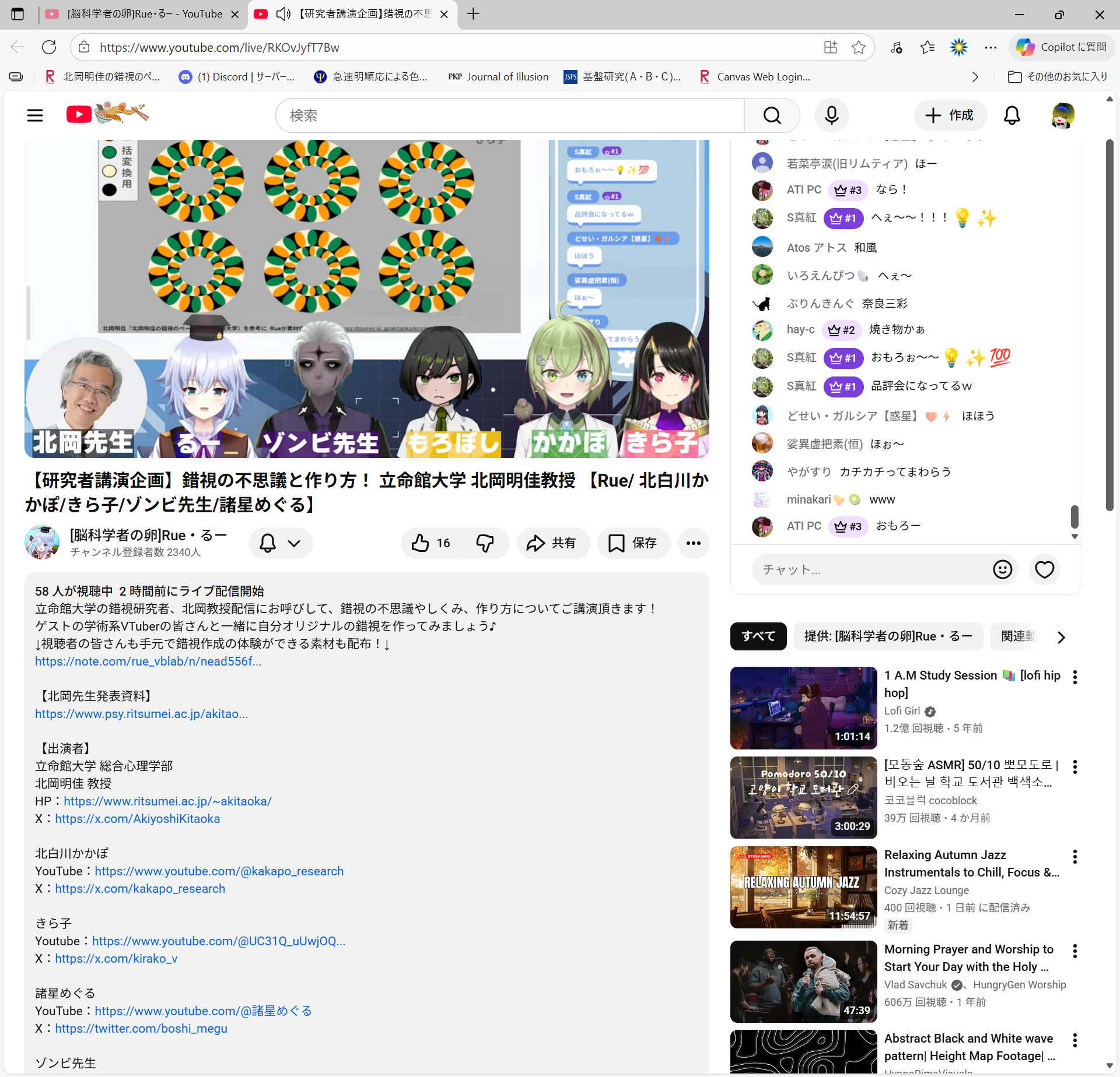 - 学術系Vtuber[脳科学者の卵]Rue・るーさんの研究者講演企画に出演しました(北岡)。
