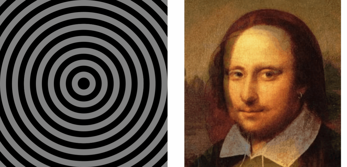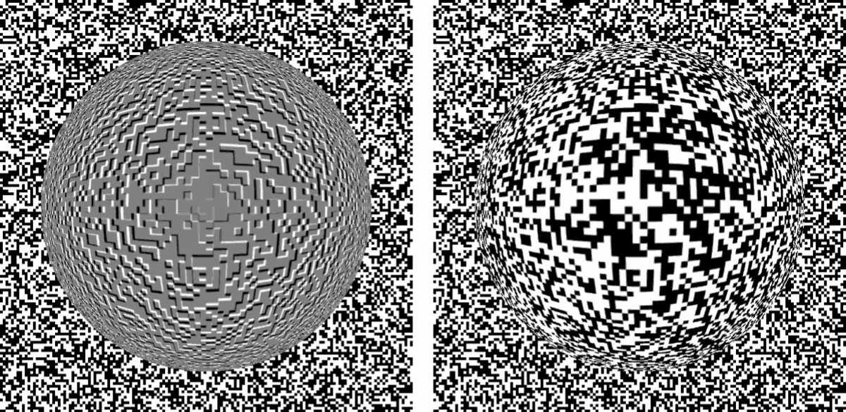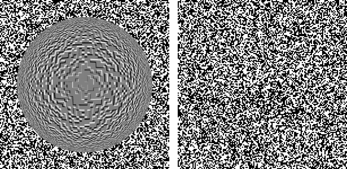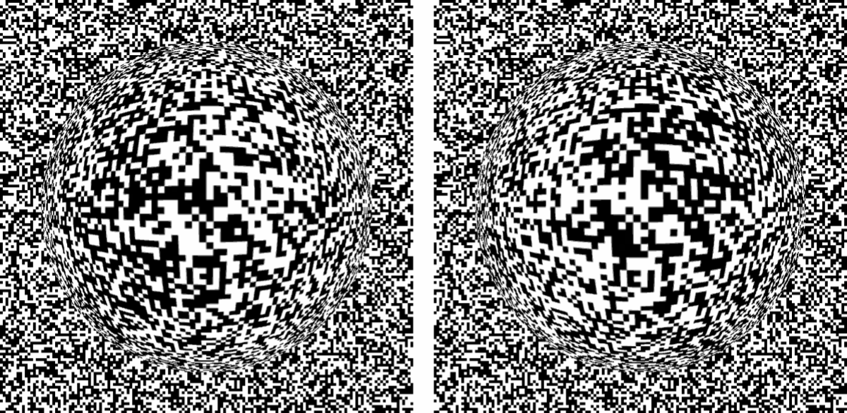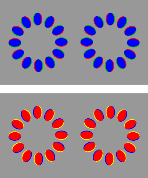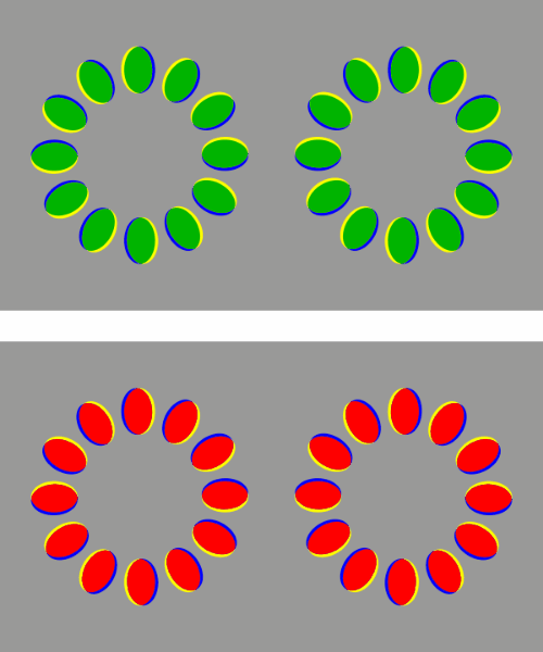 After fixing your eyes at the center of the left movie that shows illusory contraction and seeing it for a while, turn to see the right portrait, then you will see illusory expansion.