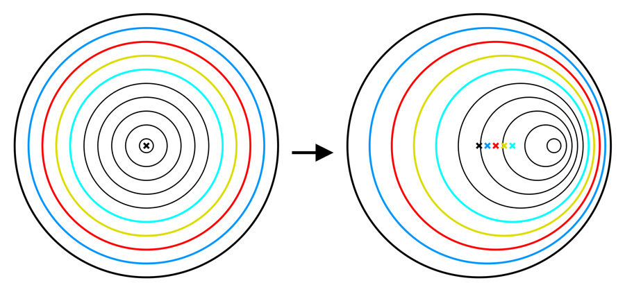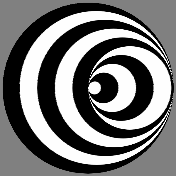 6. このように変換された同心円を回転させると、剛体的で立体感のあるロトレリーフが観察できる。