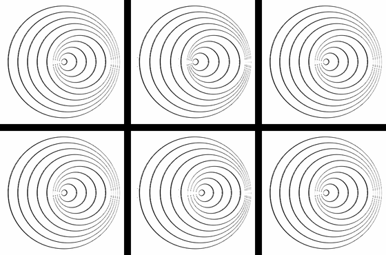 中心は静止していて、一番外側が最も多く動いて見えるバリエーションもできる。