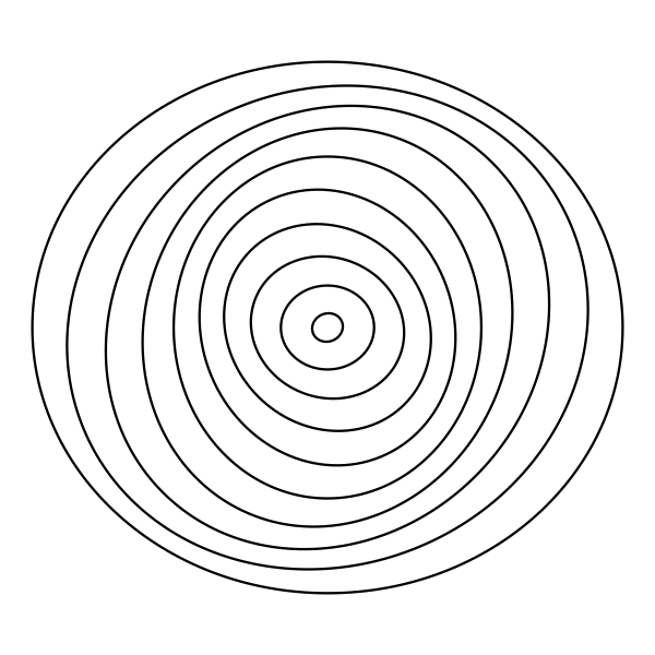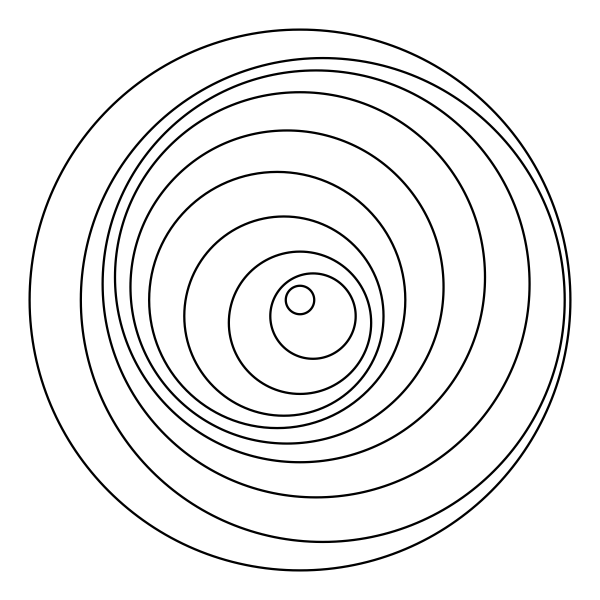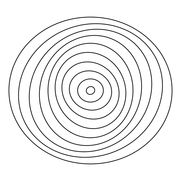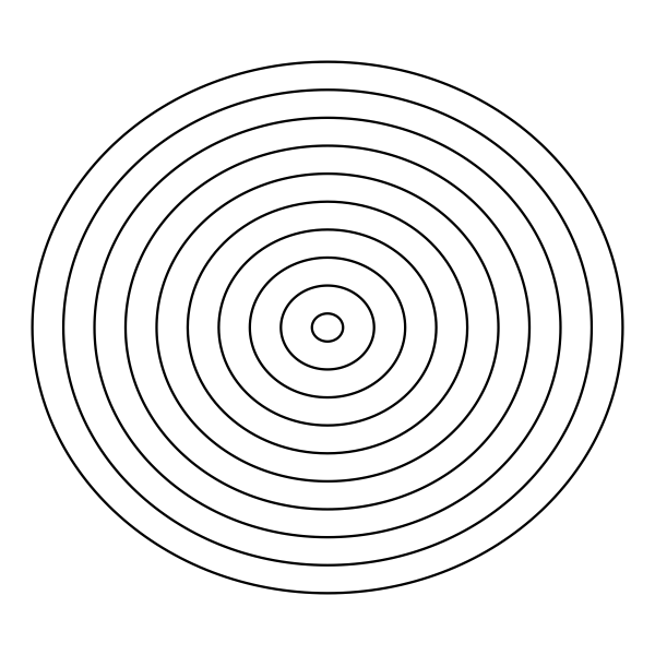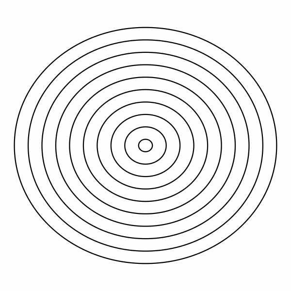 このような等間隔の縞模様の同心円の絵柄である。Musatti (1924) にはまだアクセスできていないので、最初からこの姿だったかどうかはわからないが、Wilson et al. (1983) には "double cone banded" という名称で示されている。
