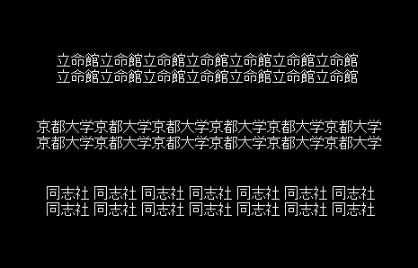 「京都大学」繰り返し文字列は右肩上がりに見える。シャレになっとらん。