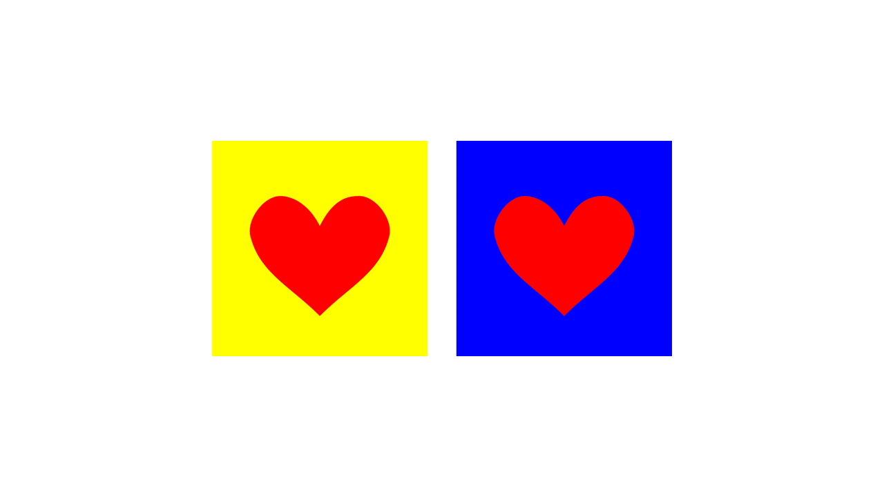 The left heart appears to be red-purple while the right one to be orange, though they are the same red.