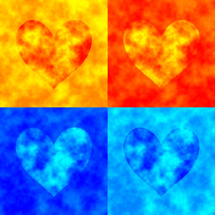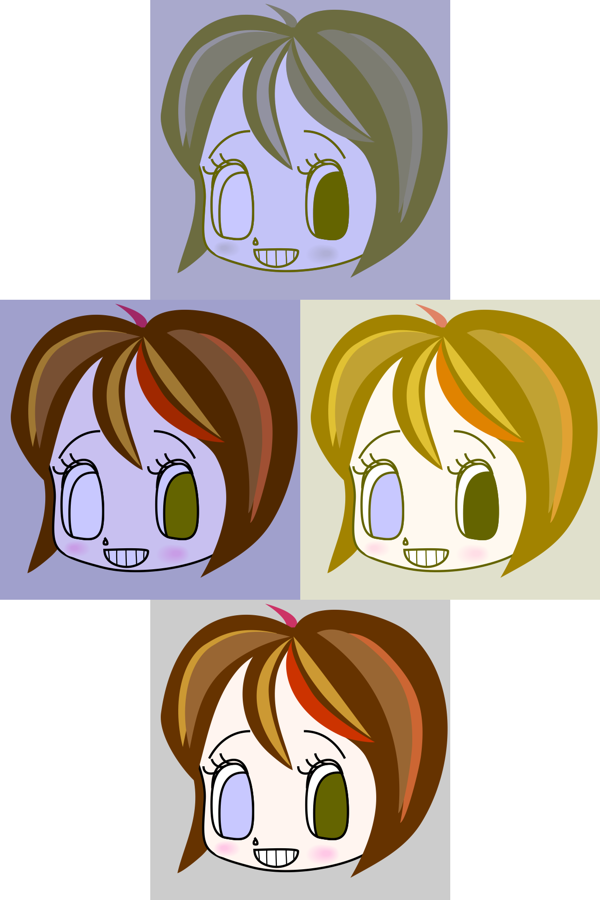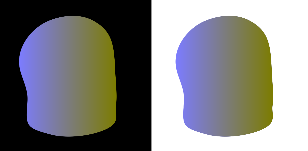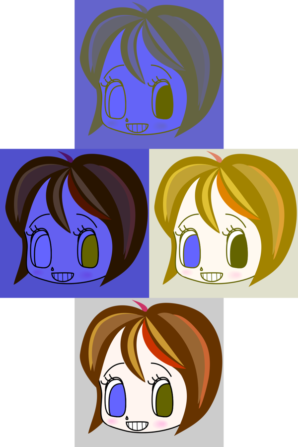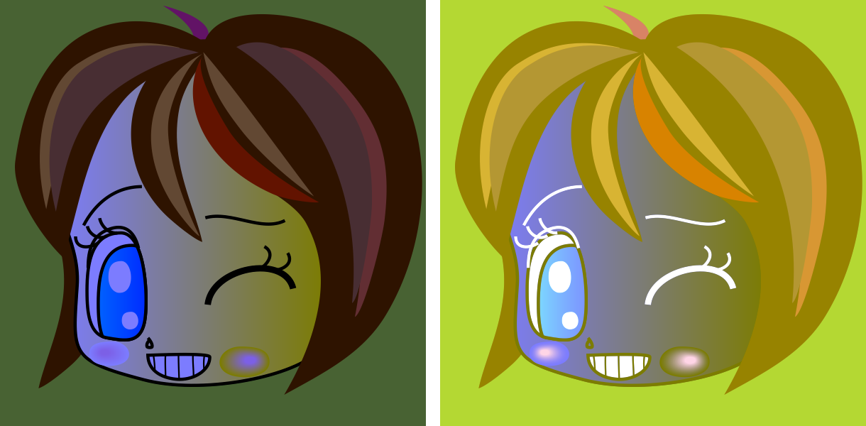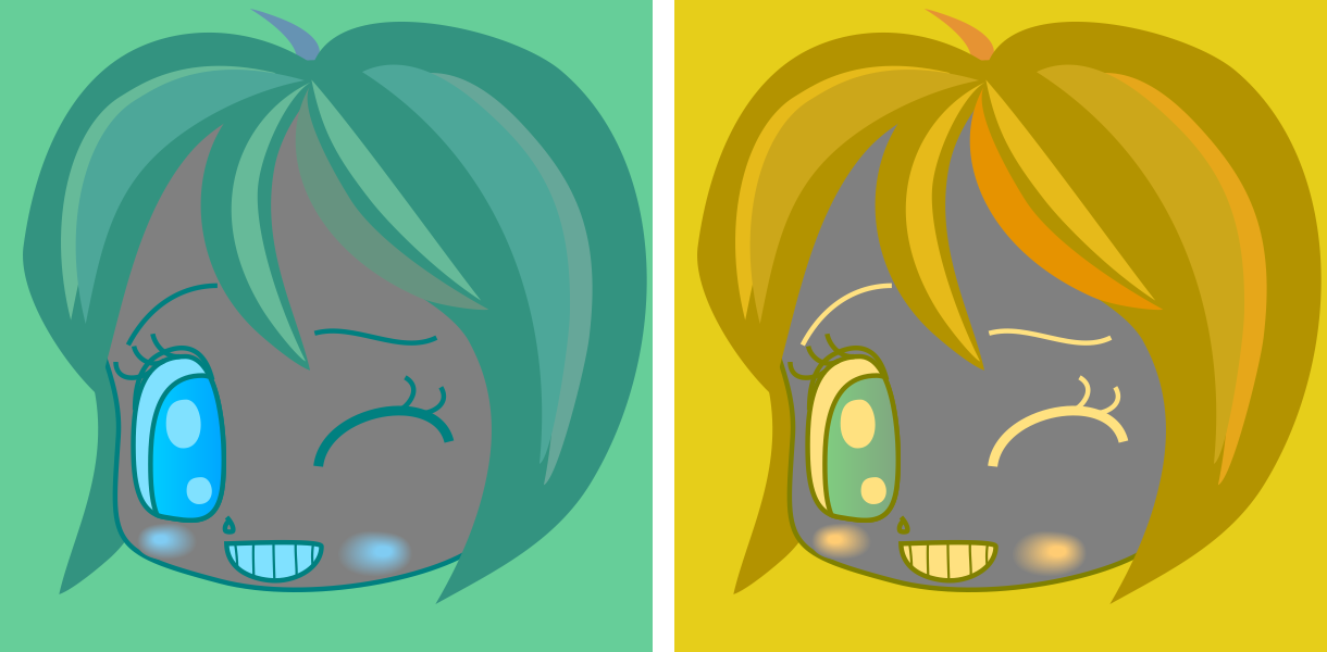 「白から黄へのグラデーション顔と青から黒へのグラデーションの顔」