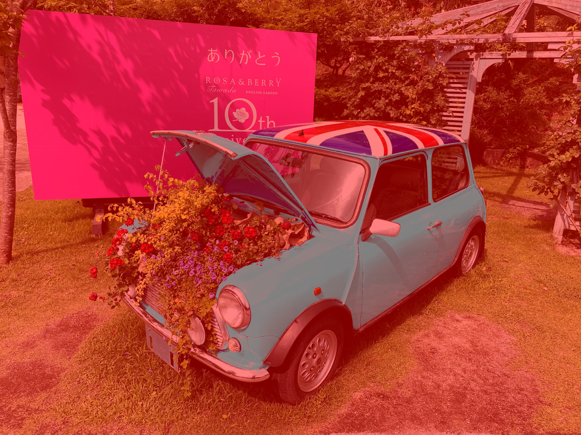 この画像をいろいろ変換して、錯視の説明をします。この画像は、数年前の薔薇の時期(2021年6月)に米原のローザンベリー多和田で撮った写真です。