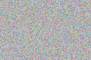 上に示した色変換をやると、sRGB色立体がどのように変わるのかを見てみます。まずランダムカラードットを用意します。