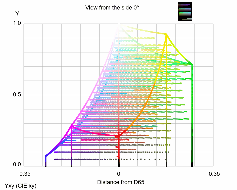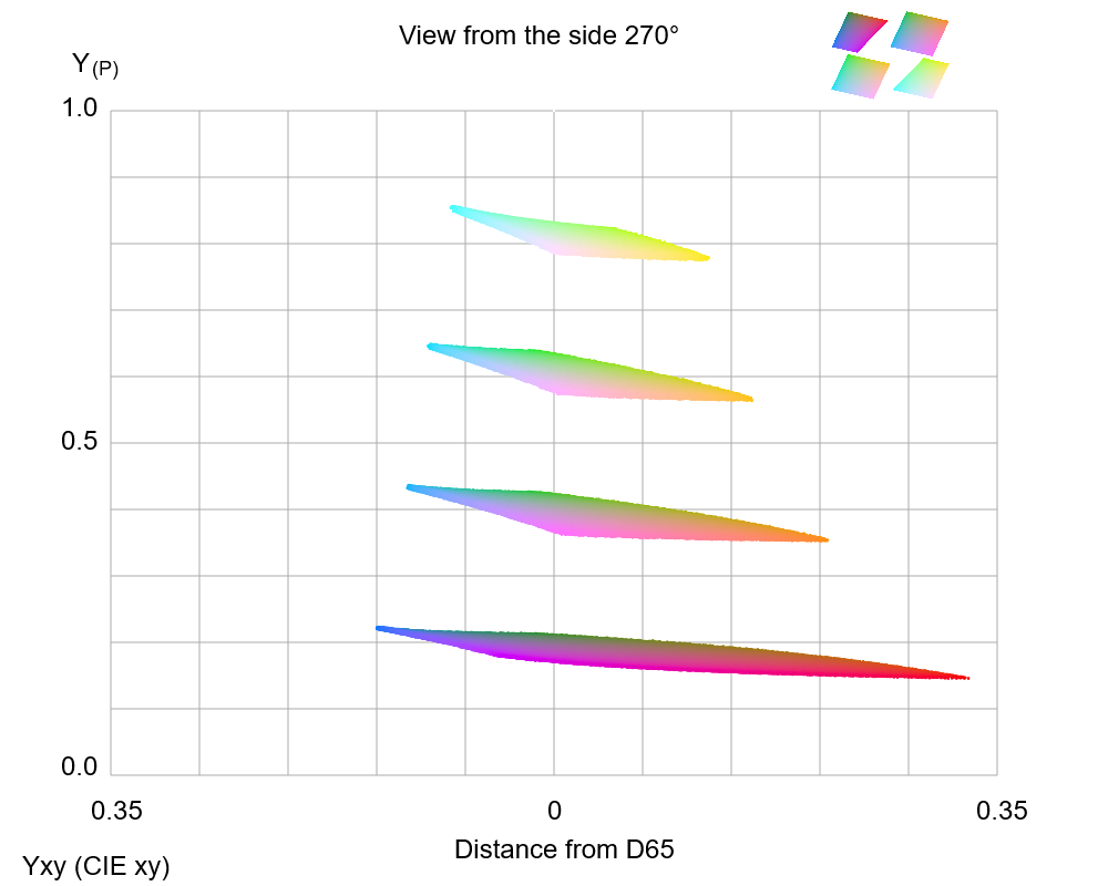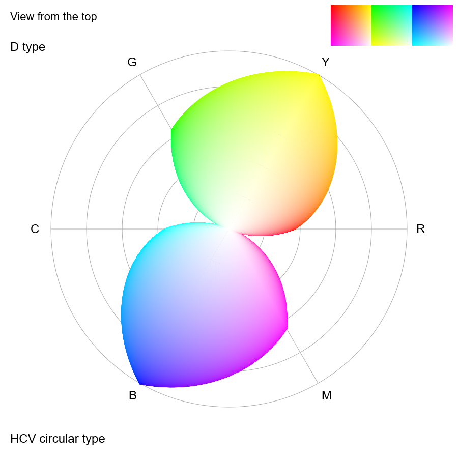 Confusion colors of D type plotted in the chroma map for P type